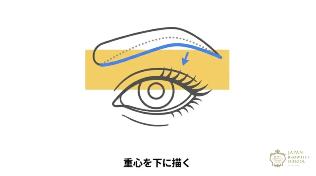 - 角度のコントロール: 眉尻を急激に下げすぎると顔全体が弛んで見えるため、口角から目尻を通るラインの延長を意識して着地させます。