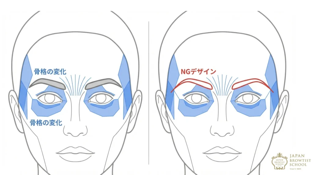 40代に入ると、肌や髪と同じように、眉毛と目元の骨格にも大きな変化が訪れます。