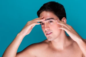 - 皺眉筋(しゅうびきん)の盛り上がり: 眉頭の上にある筋肉で、しかめっ面やPC作業での目の酷使により発達します。ここが盛り上がると、眉間に深いシワができ、不機嫌そうな印象を与えます。