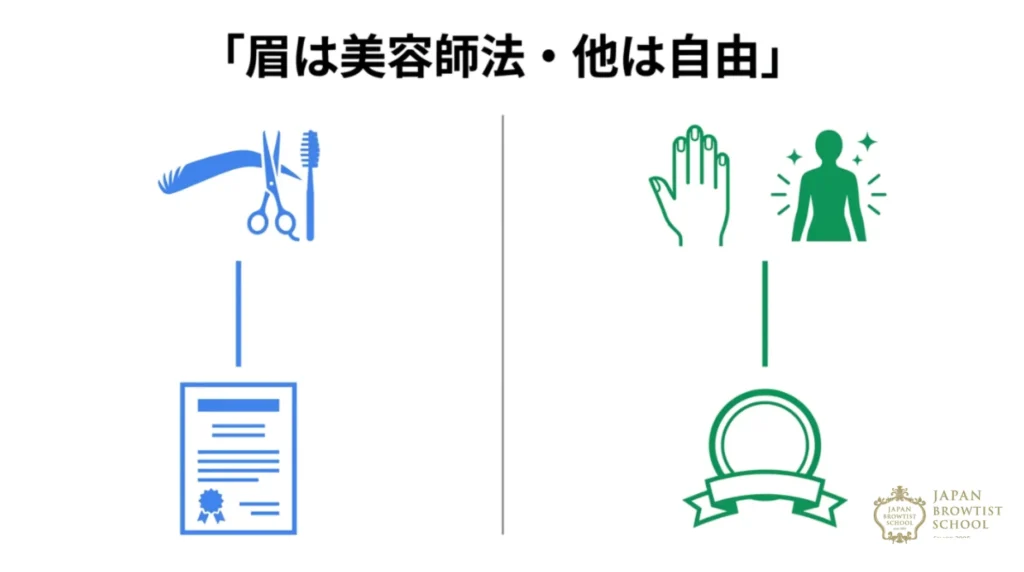 施術範囲の制限: 資格がない場合、「眉メイクのレクチャー(描き方を教える)」は可能だが、実際に毛を処理してデザインすることはできない。