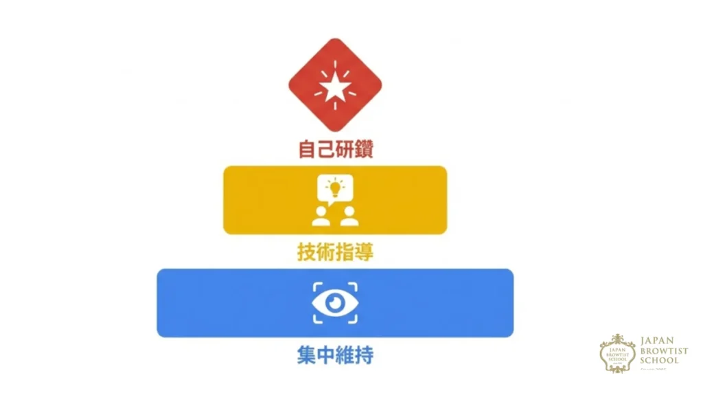 フィードバックの質: 欠点の指摘だけでなく、本人の強みを伸ばす「加点方式」の指導で、技術に対する自信と誇りを持たせる。