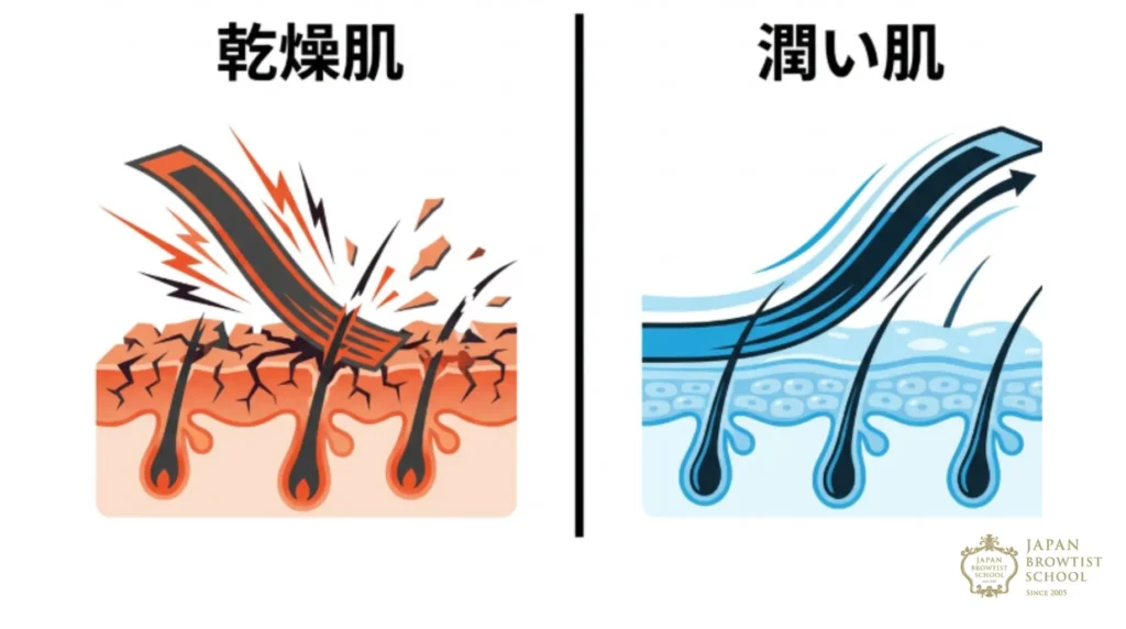 肌の乾燥は、ワックス脱毛において痛みを増幅させる最大の敵です。肌が乾燥しているとワックスが皮膚に強く張り付き、剥がす際にかかる負荷がすべて「痛み」として脳に伝わります。施術の1週間前から眉周りの保湿を徹底するだけで、驚くほどスルンと剥がれるようになります。