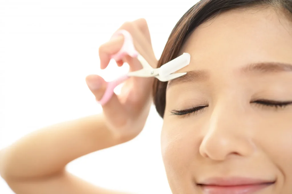 - 2. 利き顔に合わせる: お客様に「写真を撮る時、どちらの顔を向けますか?」「前髪はどちらに流しますか?」と聞き、気に入っている側(よく見せる側)の眉を基準にして、反対側をそれに近づけます。