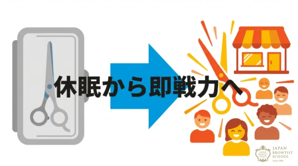 「せっかく苦労して取った美容師免許があるのに、今は全く違う仕事をしている」「結婚や出産で現場を離れて数年、もうハサミを握る自信がない」。そんな風に、宝の持ち腐れ状態になっている自分に焦りを感じてはいませんか。美容師免許は一度取得すれば一生有効な国家資格ですが、現場を離れる期間が長くなるほど「今の技術についていけるだろうか」という不安は大きくなるものです。