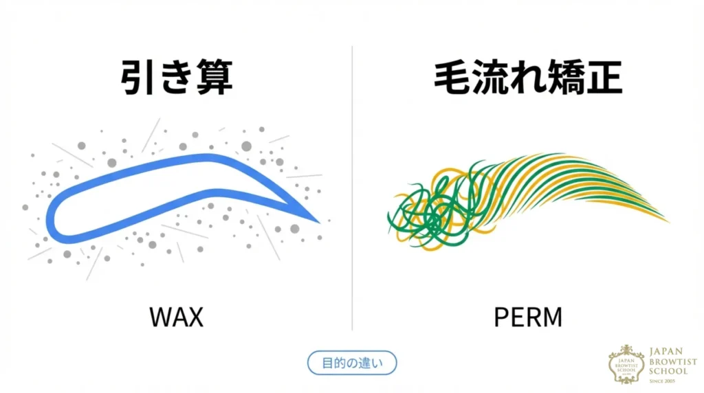 まず押さえておきたいのは、アイブロウワックスと眉毛パーマは、そもそもアプローチする「悩み」のベクトルが全く異なるということです。